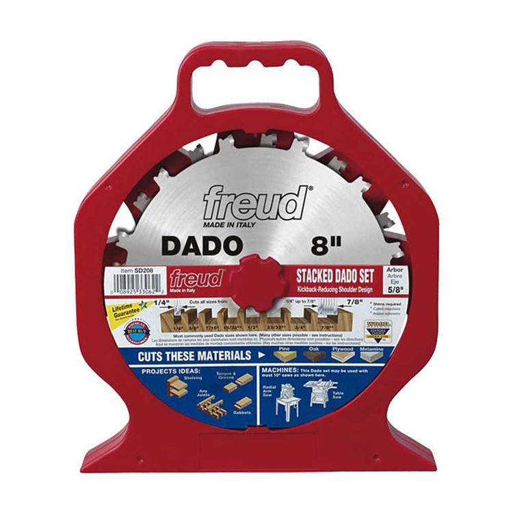 It has two outside blades with three two-wing chippers. Mar 31 2016 Stacked Dado Sets X Stacked Dado Sets. Nov 21 2003 Freud makes 4 different sets a Super DadoSD508 with anti-kickback for around 170 Safety Dado that runs about 150 with shimsSD308 SS100 a Professional Dado Set SD208 for about 85 and a Dial a Width Dado Set SD608 costs about 230.